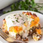 - Assemble Casserole: Layer the cooked scrambled eggs over the biscuit pieces. Pour the sausage gravy evenly on top of the eggs. Then sprinkle 1 cup of shredded cheddar cheese evenly over the gravy.