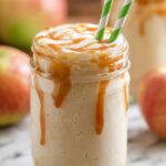 A refreshing and easy Caramel Apple Smoothie made with milk, unsweetened apple juice, fresh apple chunks, sugar-free caramel syrup, and ice. Perfect for a healthy breakfast, snack, or dessert.