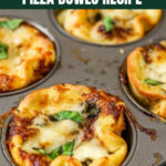 Roll out your pizza dough and cut it into 12 equal squares. Brush each piece with olive oil and sprinkle with Italian seasoning, salt, and garlic powder. Press each square gently into a greased muffin tin or small bowls to create the “bowl” shape, then pre-bake at 375°F for about 10 minutes or until just set and starting to golden.