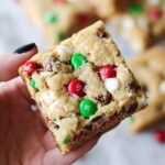 These Gooey Christmas Cookie Bars are festive blondies packed with holiday M&Ms and sprinkles. Soft, sweet, and perfect for gifting or enjoying throughout the holiday season, they bake quickly and are freezer-friendly for convenience.