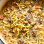 This Beef Noodle Soup is a creamy, comforting meal featuring tender top sirloin beef pieces, robust vegetables, and egg noodles in a rich, aromatic broth. With just 30 minutes of prep and slow baking, it creates a melt-in-your-mouth experience perfect for hearty dinners and easily adaptable with your favorite veggies or less creaminess.