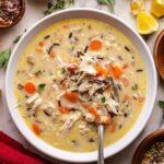 A cozy, creamy one-pot Chicken and Wild Rice Soup loaded with carrots, celery, onions, fresh herbs, and tender shredded chicken—thickened just enough for a silky spoonful and brightened with a squeeze of lemon. Perfect for cold-weather comfort food, weeknight dinners, make-ahead lunches, or easy entertaining.