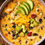 This Creamy Chicken Enchilada Soup is a comforting and flavorful Tex-Mex dish featuring tender shredded chicken, black beans, corn, and green chiles simmered in a rich broth with red enchilada sauce and fire-roasted tomatoes. Finished with cream cheese, heavy cream, and melted cheddar cheese, this soup delivers a creamy, satisfying texture perfect for a quick weeknight dinner.