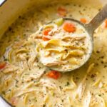 A comforting and creamy chicken noodle soup made with fresh vegetables, tender shredded chicken, and wide egg noodles in a flavorful broth thickened with flour and enriched with half-and-half. Perfect for a hearty meal on chilly days.