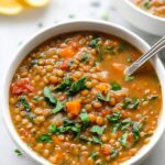 A hearty and flavorful lentil soup made with fresh vegetables, aromatic spices, and tender lentils simmered to perfection, finished with fresh spinach and a burst of lemon juice for brightness. This comforting one-pot meal is nutritious, easy to prepare, and perfect for any day of the week.