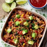 - Serve: Spoon the finished salsa chicken onto plates or tortillas. Top with shredded cheddar cheese, sliced avocado, and lime wedges. Serve with extra salsa on the side if desired.