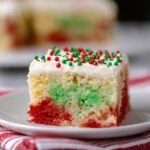 - Decorate and serve: Before serving, sprinkle red and green sprinkles or decorations over the top for a festive finish. Enjoy your Christmas Poke Cake!