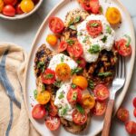 This Grilled Chicken Caprese with Burrata combines juicy grilled chicken breasts with fresh cherry tomatoes, basil, and creamy burrata cheese. Finished with a homemade balsamic glaze, it's a delicious and easy-to-make dinner perfect for any season.