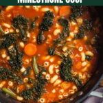 A hearty and comforting Minestrone Soup packed with tender pasta, creamy cannellini beans, kale, carrots, and green beans simmered in a rich tomato and vegetable broth, garnished with fresh basil and shaved parmesan. Perfect for a cozy vegetarian dinner.