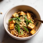 A quick and easy vegan recipe for Sesame Ramen Noodles with Crispy Tofu, combining crunchy tofu, flavorful peanut-tahini sauce, and fresh green onions for a satisfying and light meal.