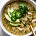 A hearty and flavorful Slow Cooker Chicken Chile Verde Stew made with tender chicken thighs, green chiles, salsa verde, and red potatoes. This easy stew is perfect for meal prep and offers a gently spicy, comforting meal that can be conveniently cooked in a slow cooker.