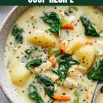 - This recipe is a creamy copycat of the popular Olive Garden chicken gnocchi soup, loaded with tender chicken and pillowy gnocchi.