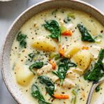 - This recipe is a creamy copycat of the popular Olive Garden chicken gnocchi soup, loaded with tender chicken and pillowy gnocchi.