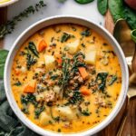 This rich and creamy Sausage Potato Soup features spicy Italian sausage, tender red or yellow potatoes, carrots, and nutritious spinach. A hearty and flavorful meal that's ready in under an hour, perfect for comforting lunches or dinners.