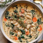 A hearty and comforting Sausage White Bean Soup featuring spicy Italian sausage, tender cannellini beans, fresh vegetables, and a touch of cream. This one-pot meal is perfect for chilly nights and offers a rich, flavorful broth with a creamy texture and a balance of savory and spicy notes.