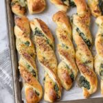 Deliciously savory Spinach Artichoke Breadsticks combine the creamy, cheesy goodness of spinach artichoke dip with the satisfying texture of twisted breadsticks. Perfect as a flavorful appetizer or snack for game day or gatherings, these golden-baked twists are brushed with a garlic herb butter for an irresistible finish.